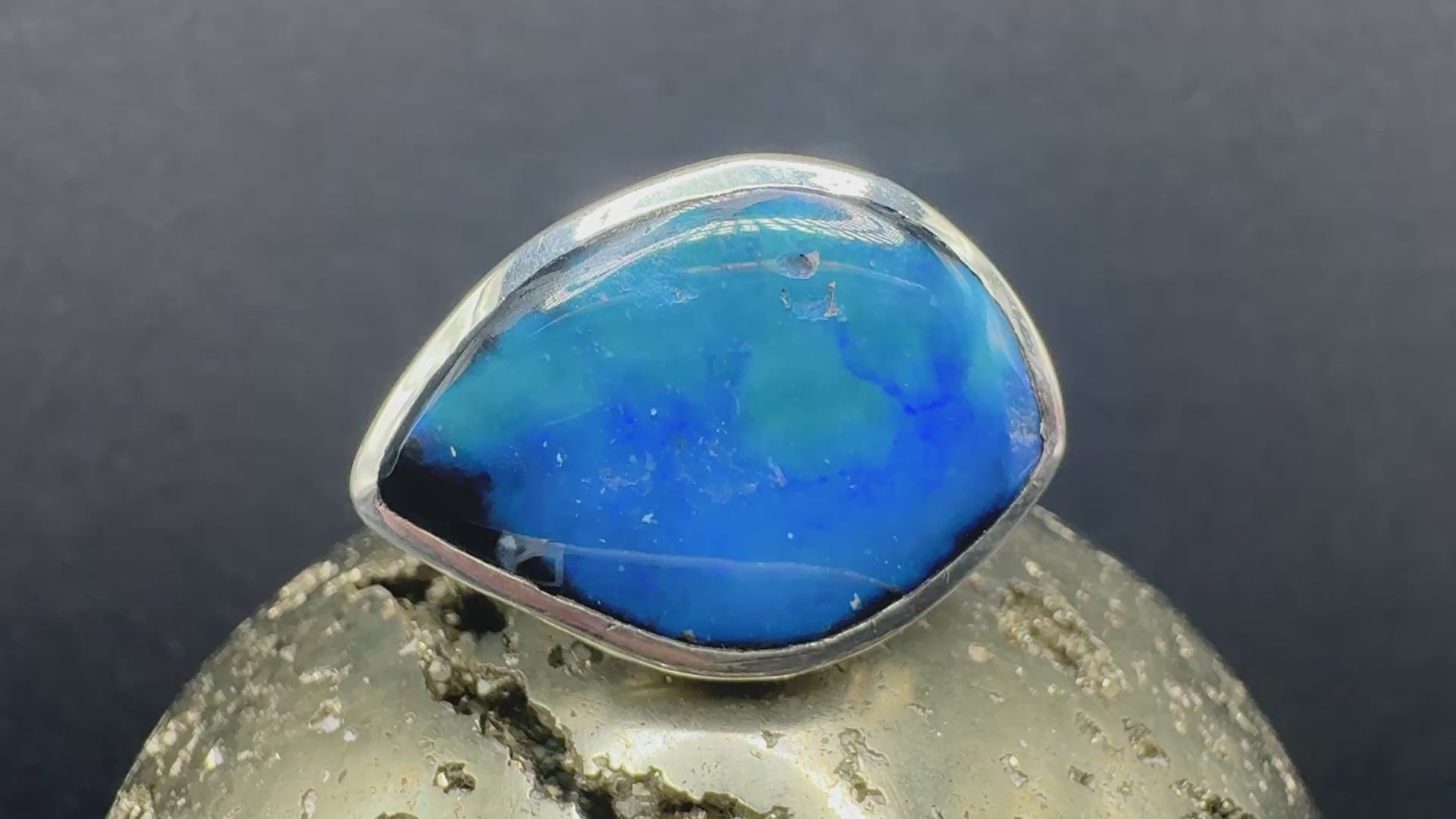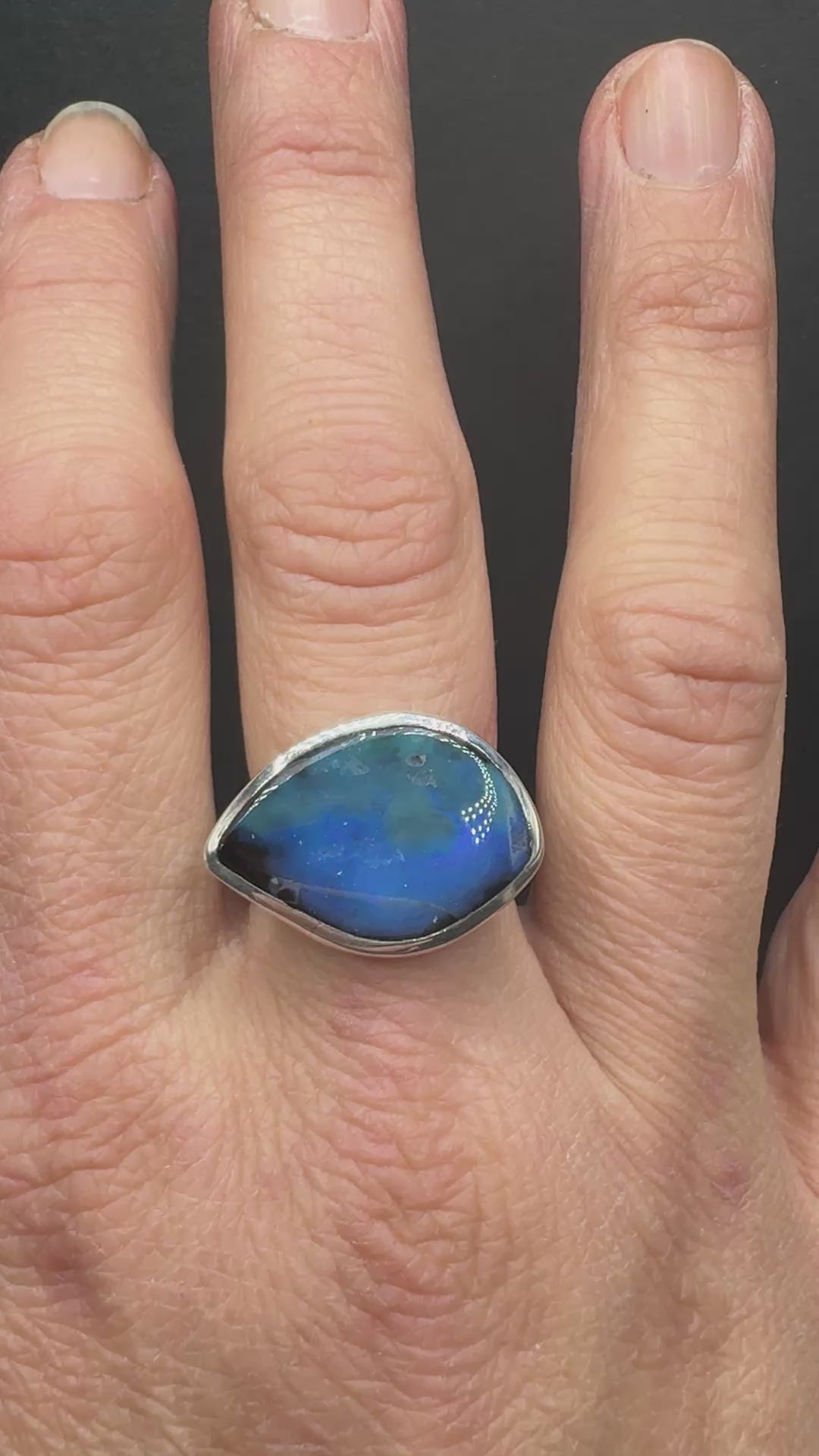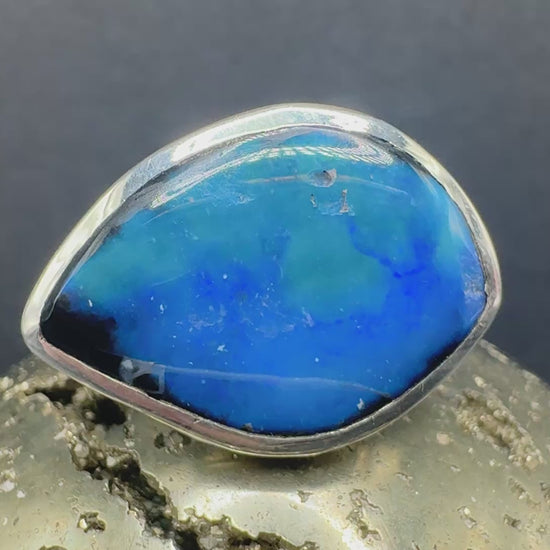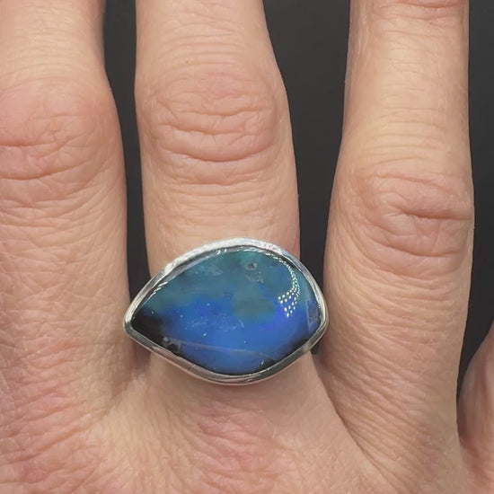 Size 8.25 Australian black opal eye set in sterling silver.