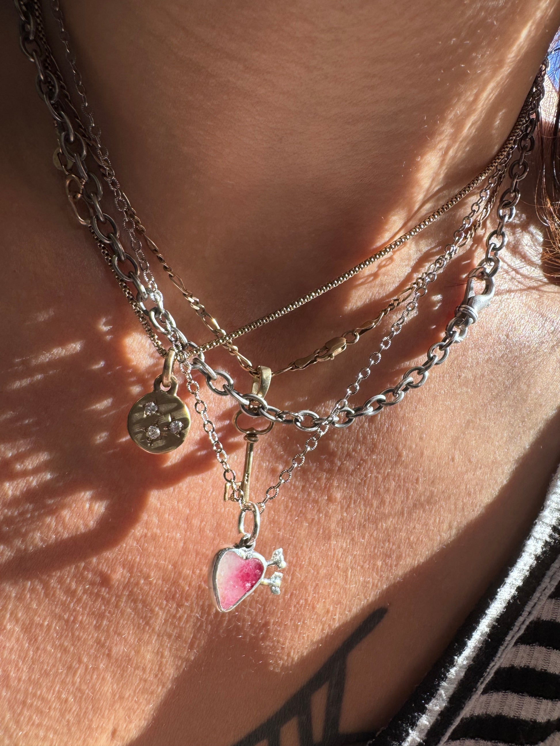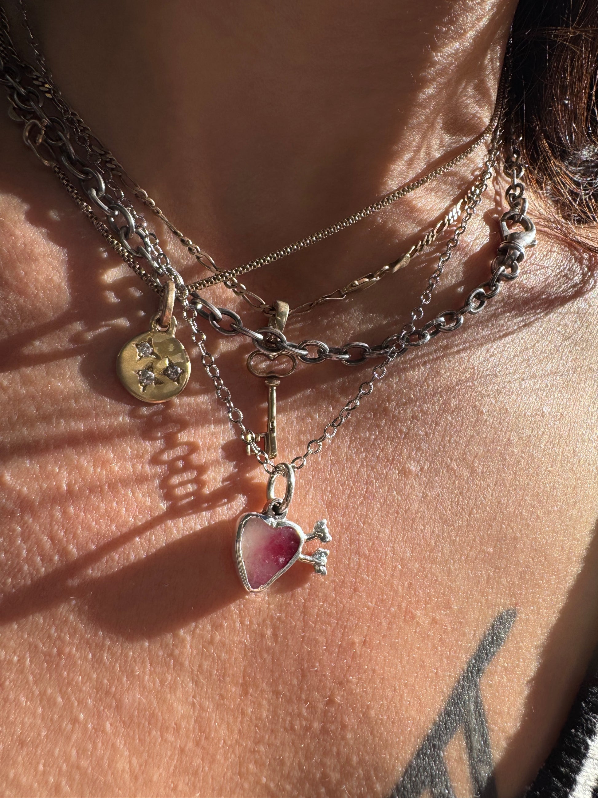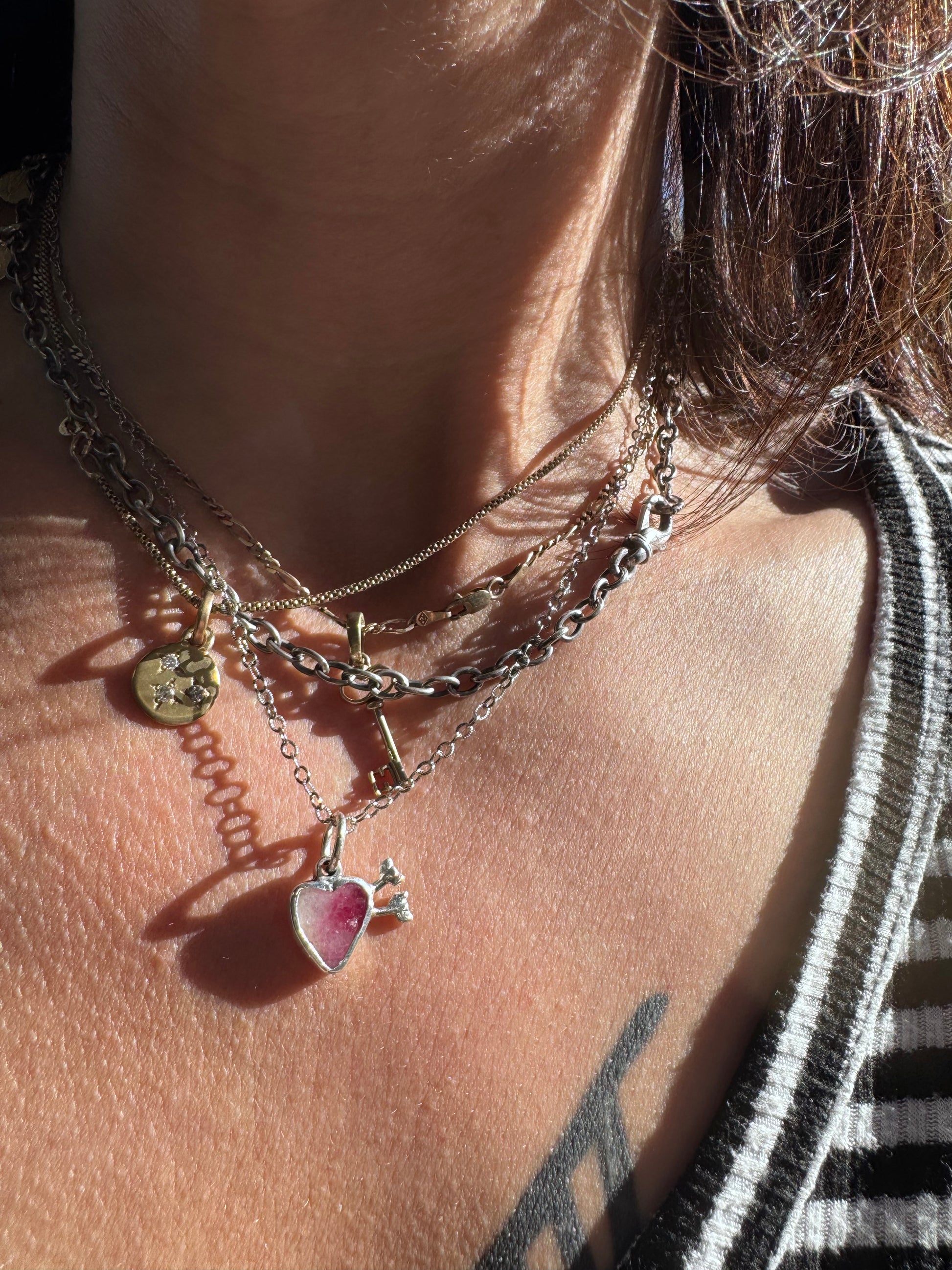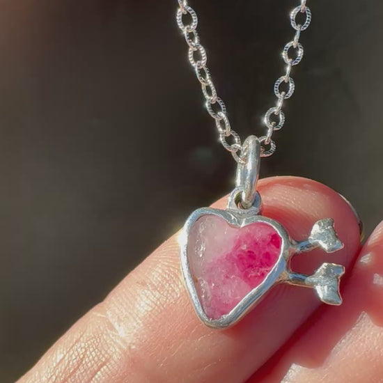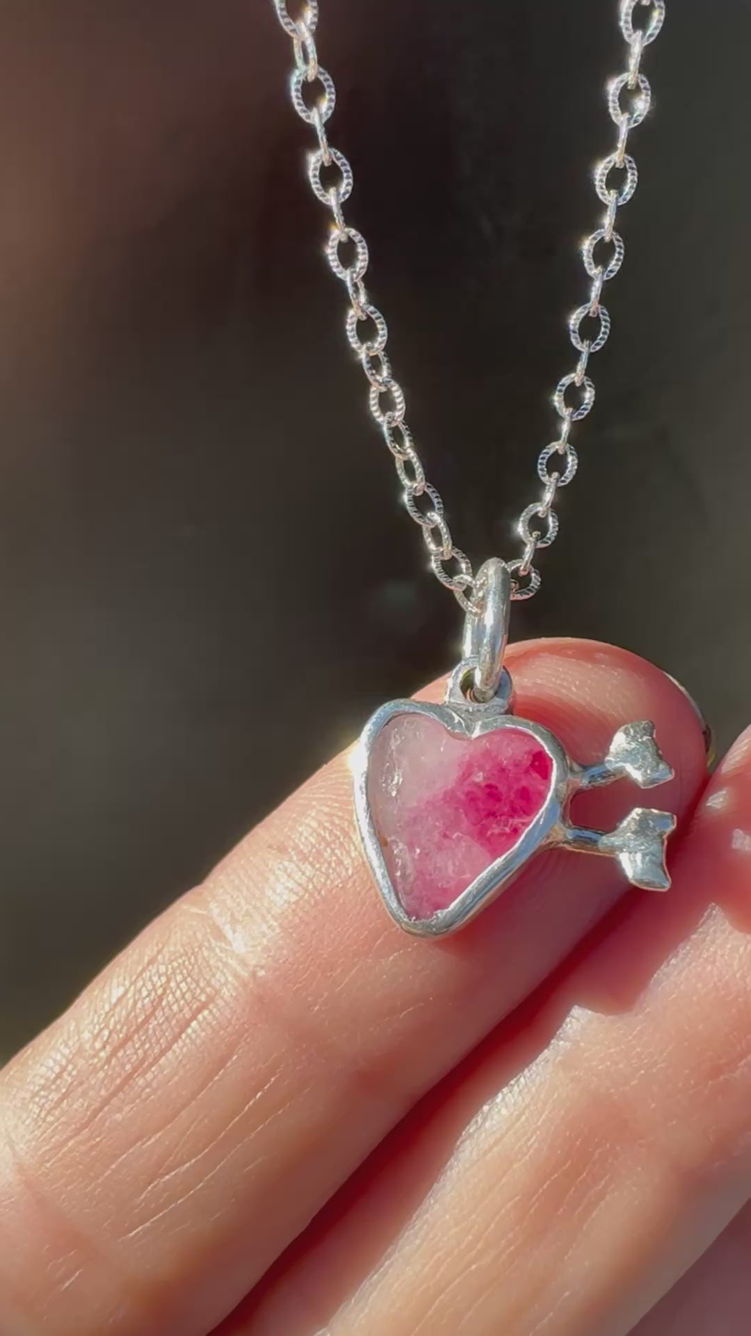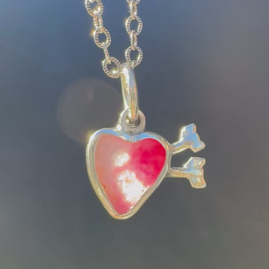 Sterling silver and hand carved UV reactive tugtupite. Comes on 18 inch oxidized sterling silver chain shown in pictures.