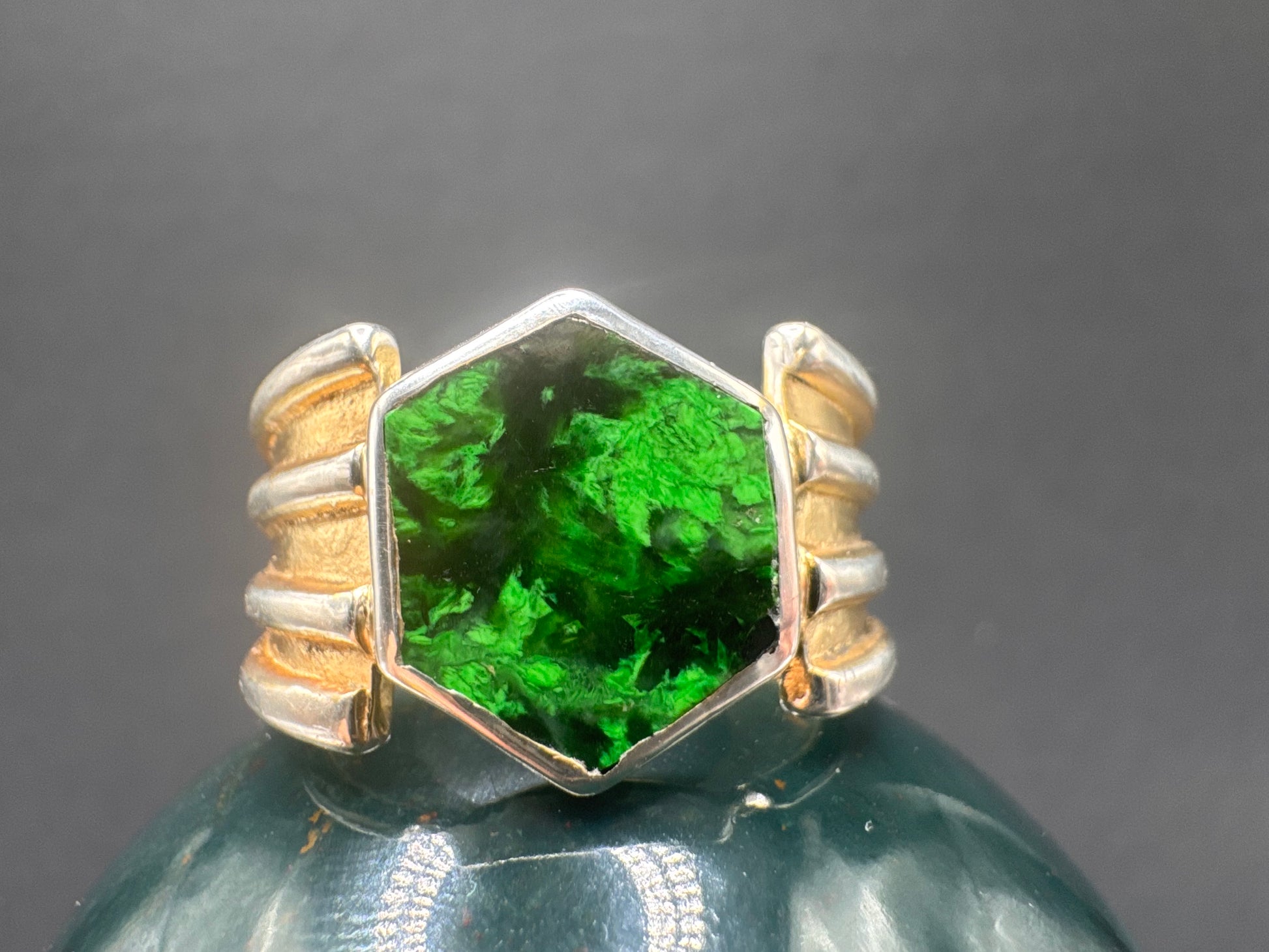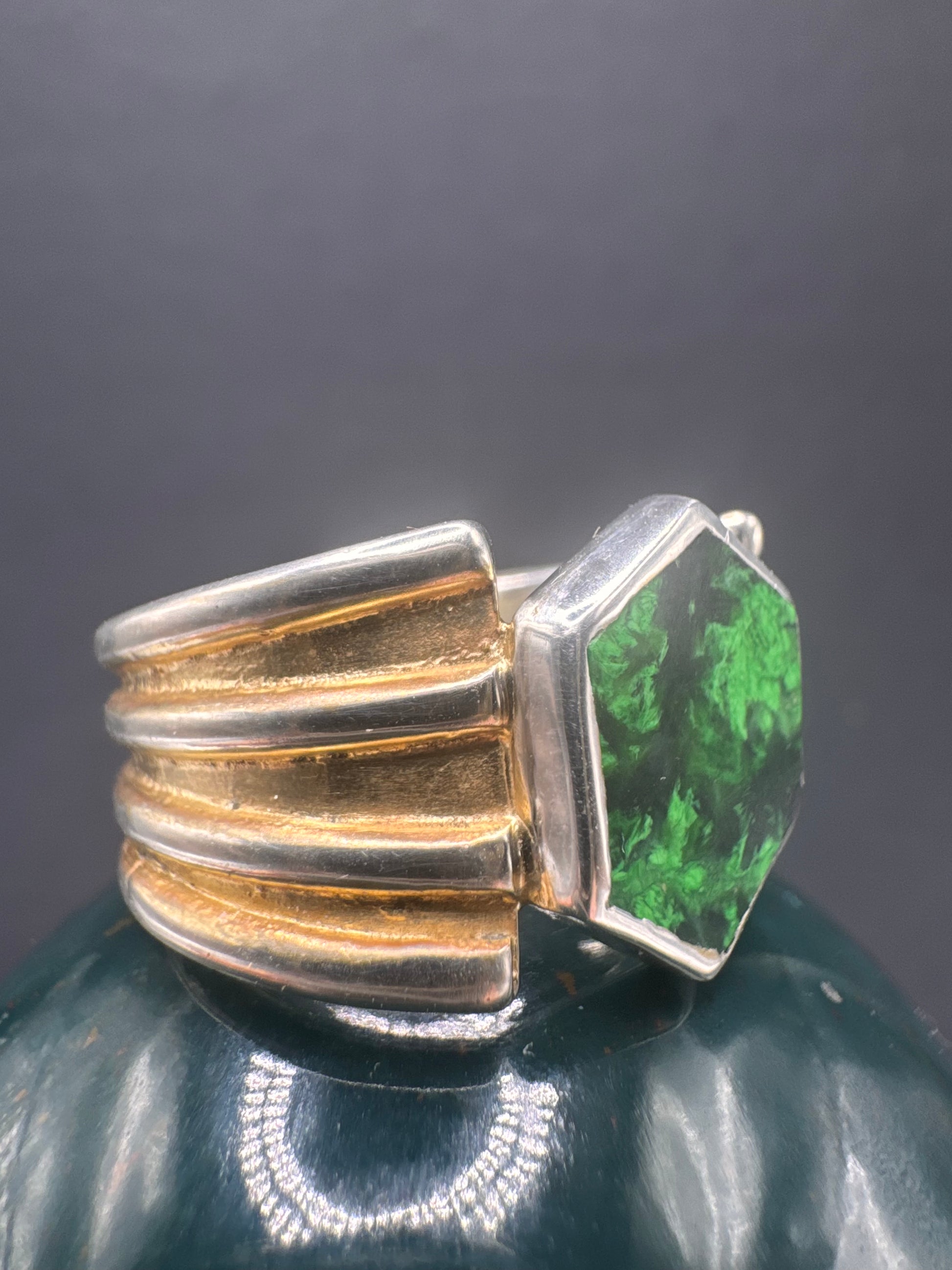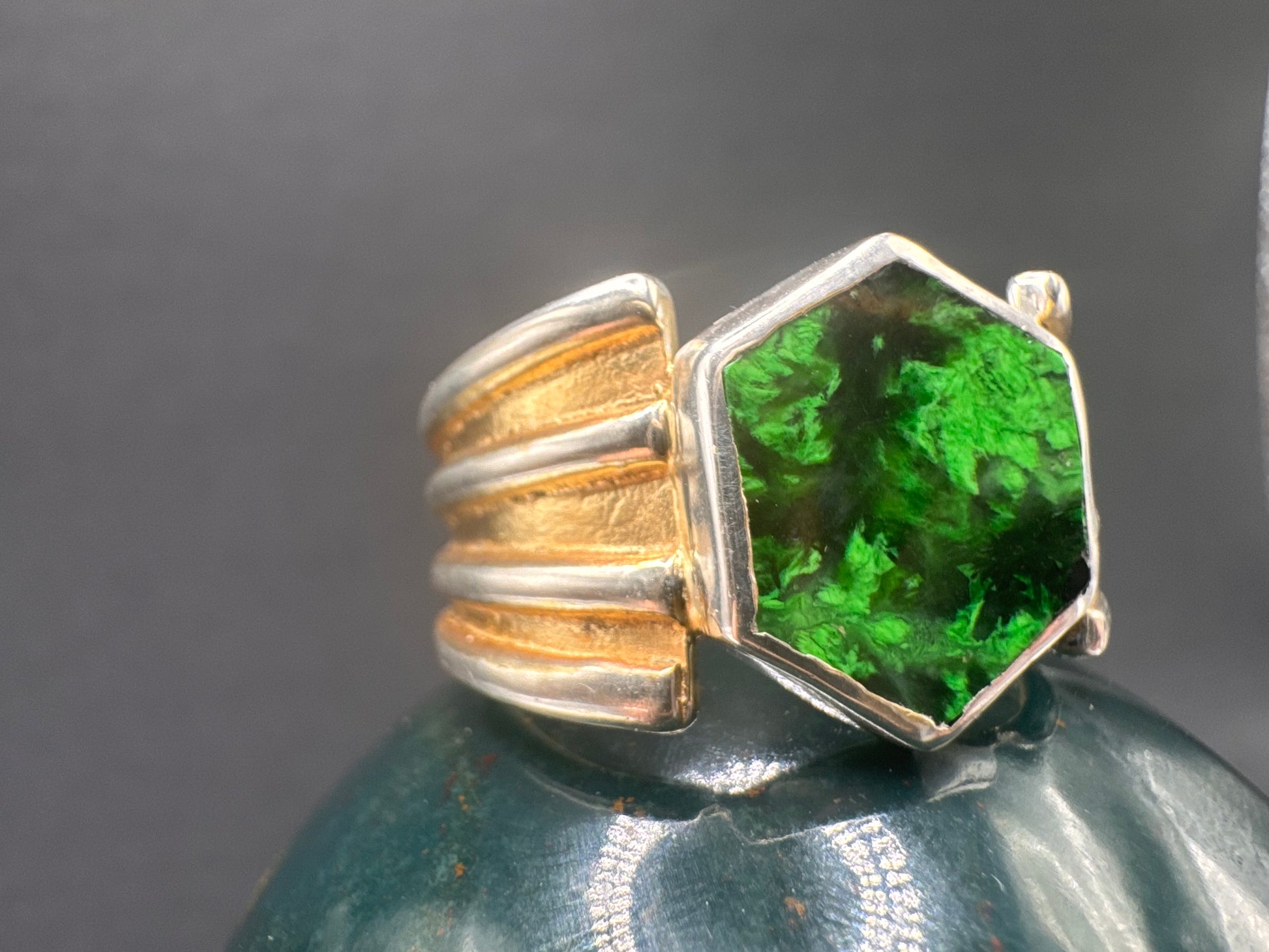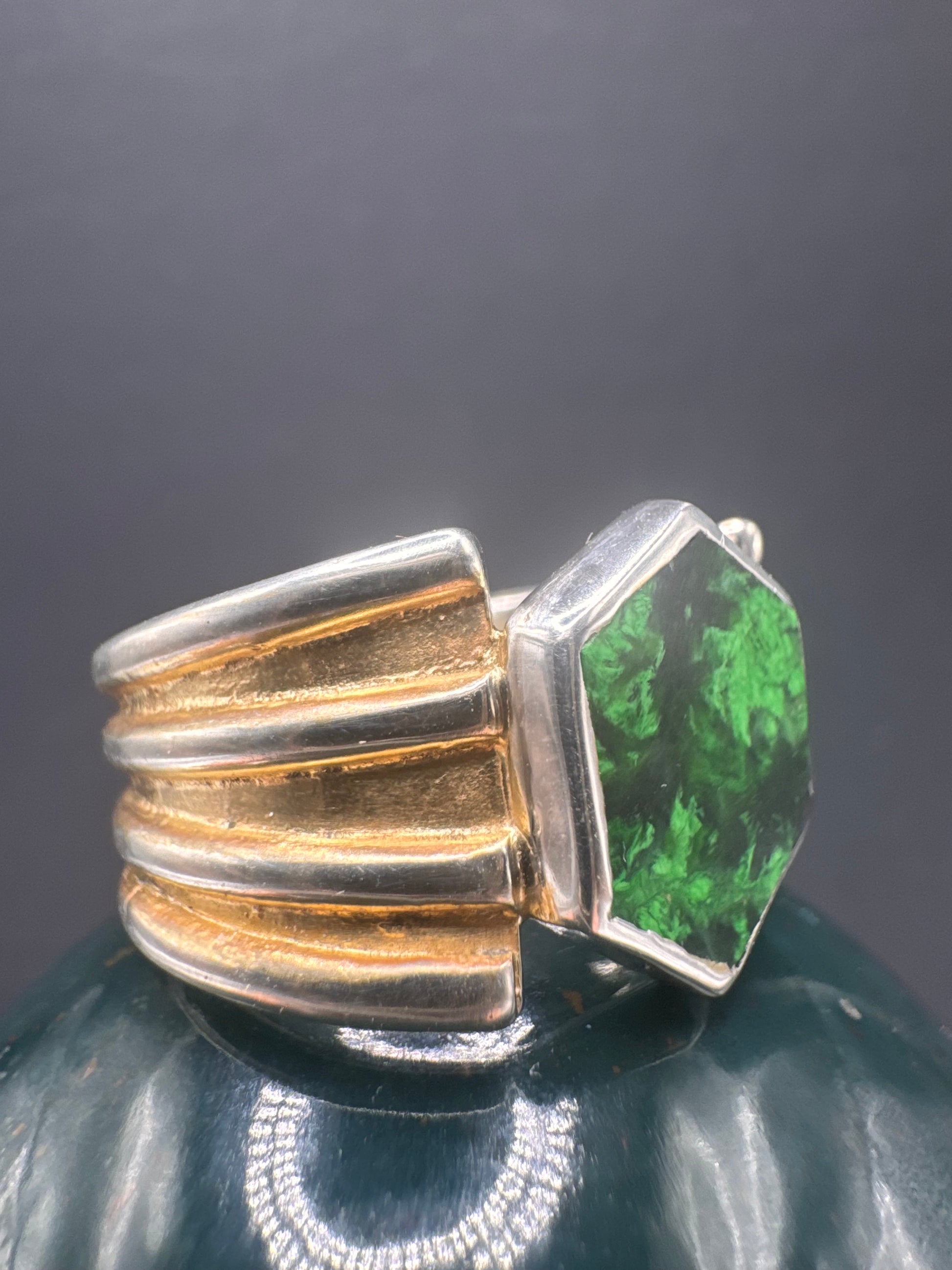 Size 12.5 . Sterling/fine silver with 24k gold plate and maw sit sit jade.