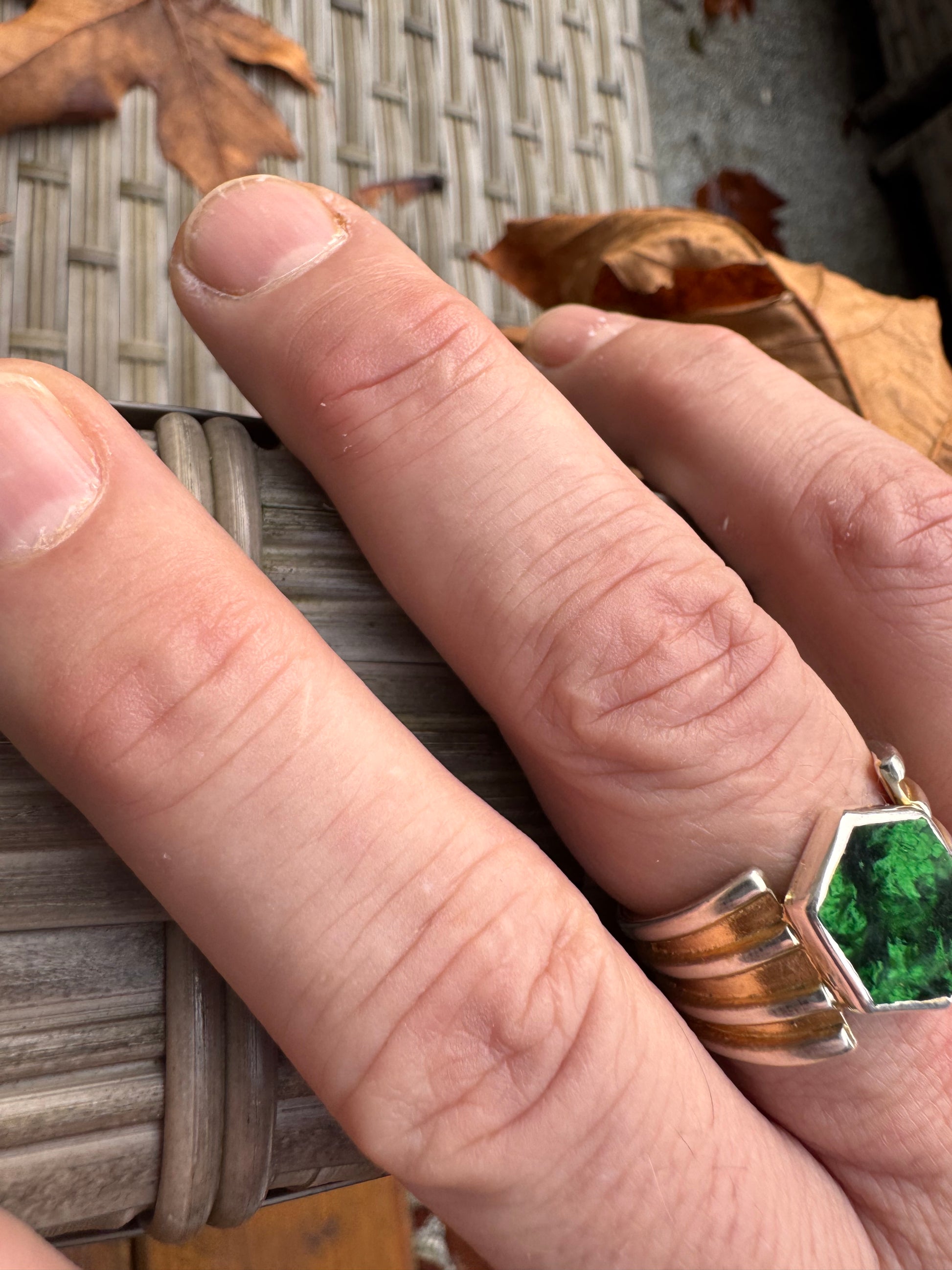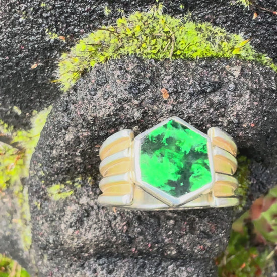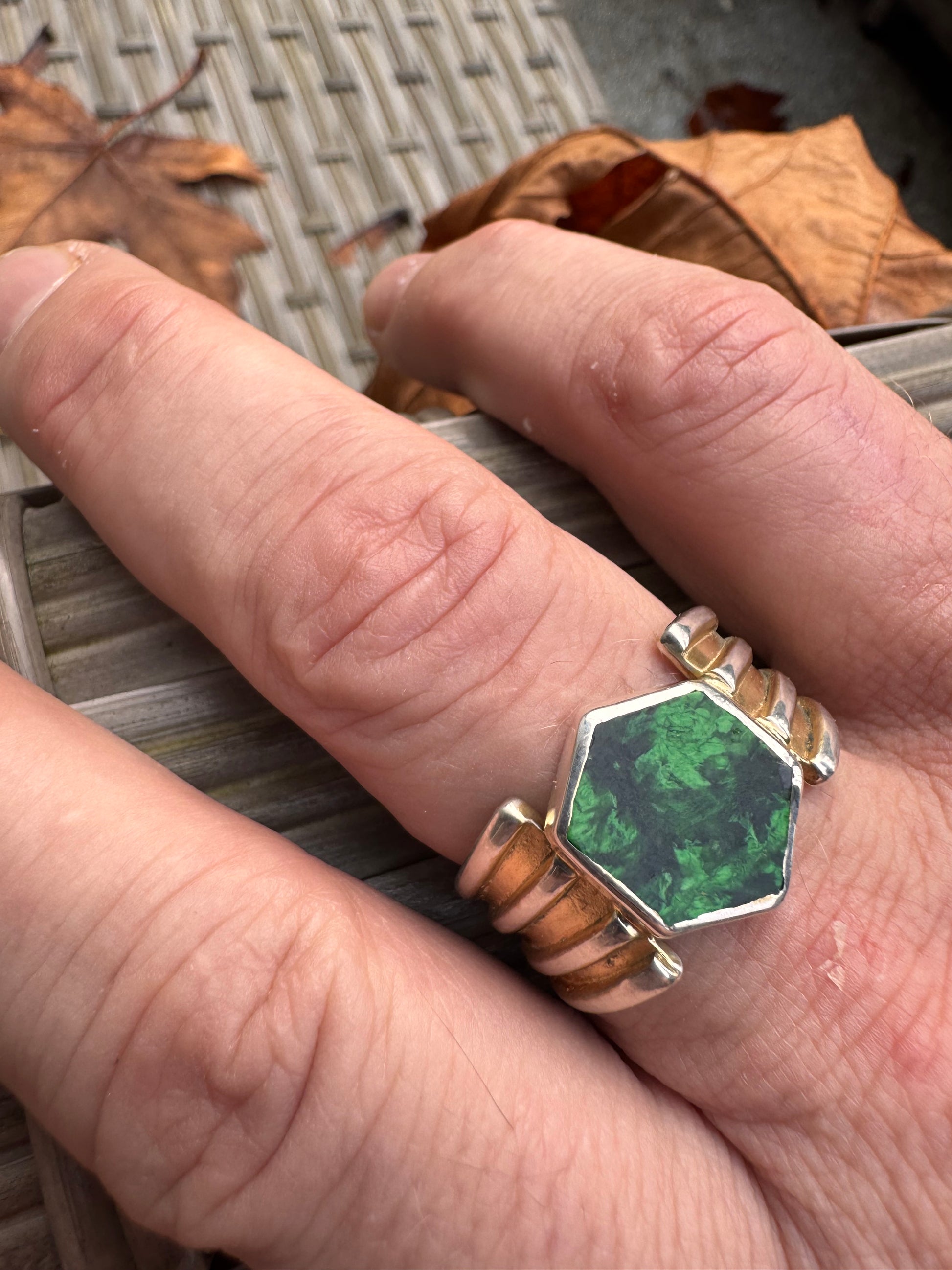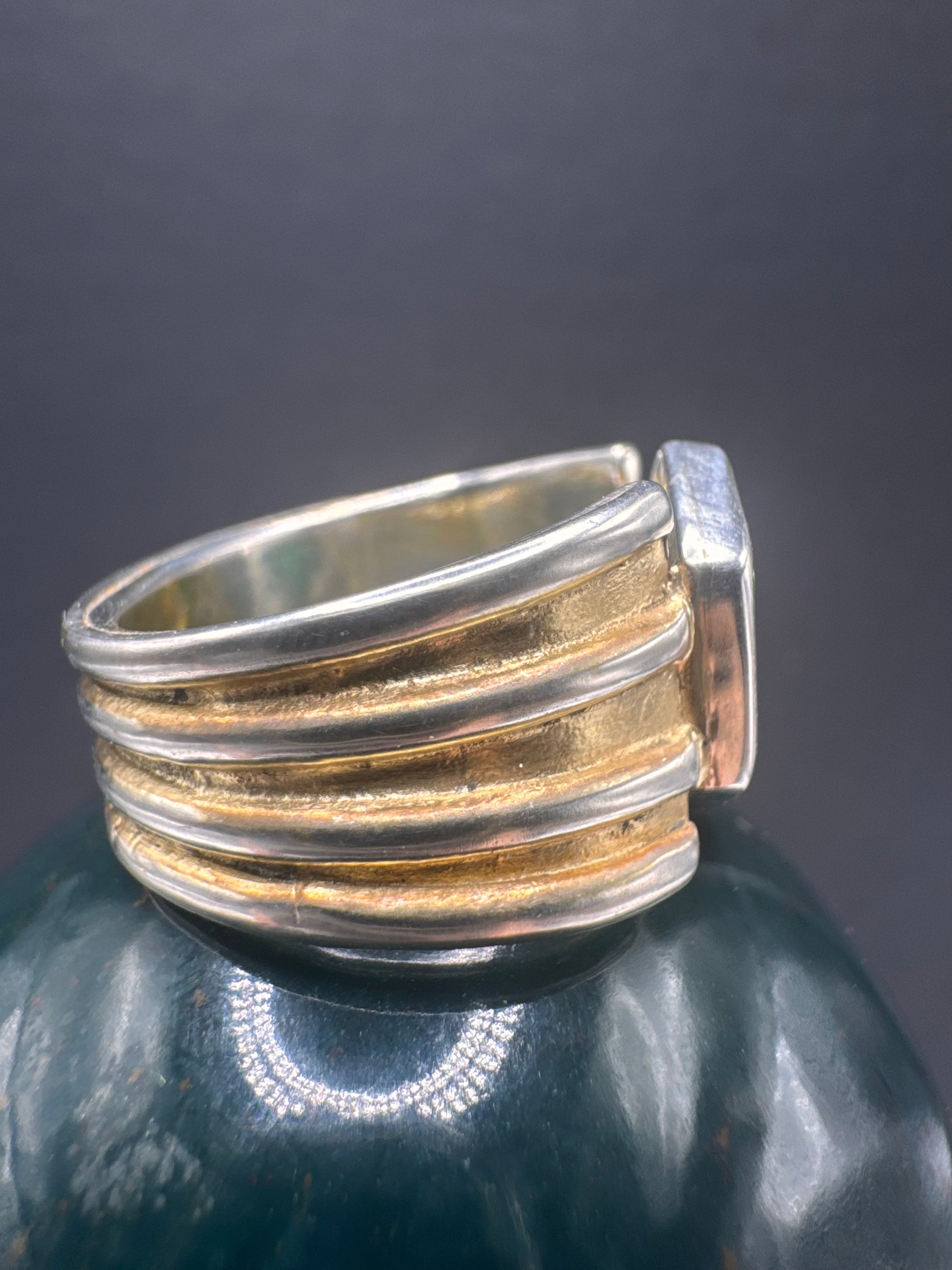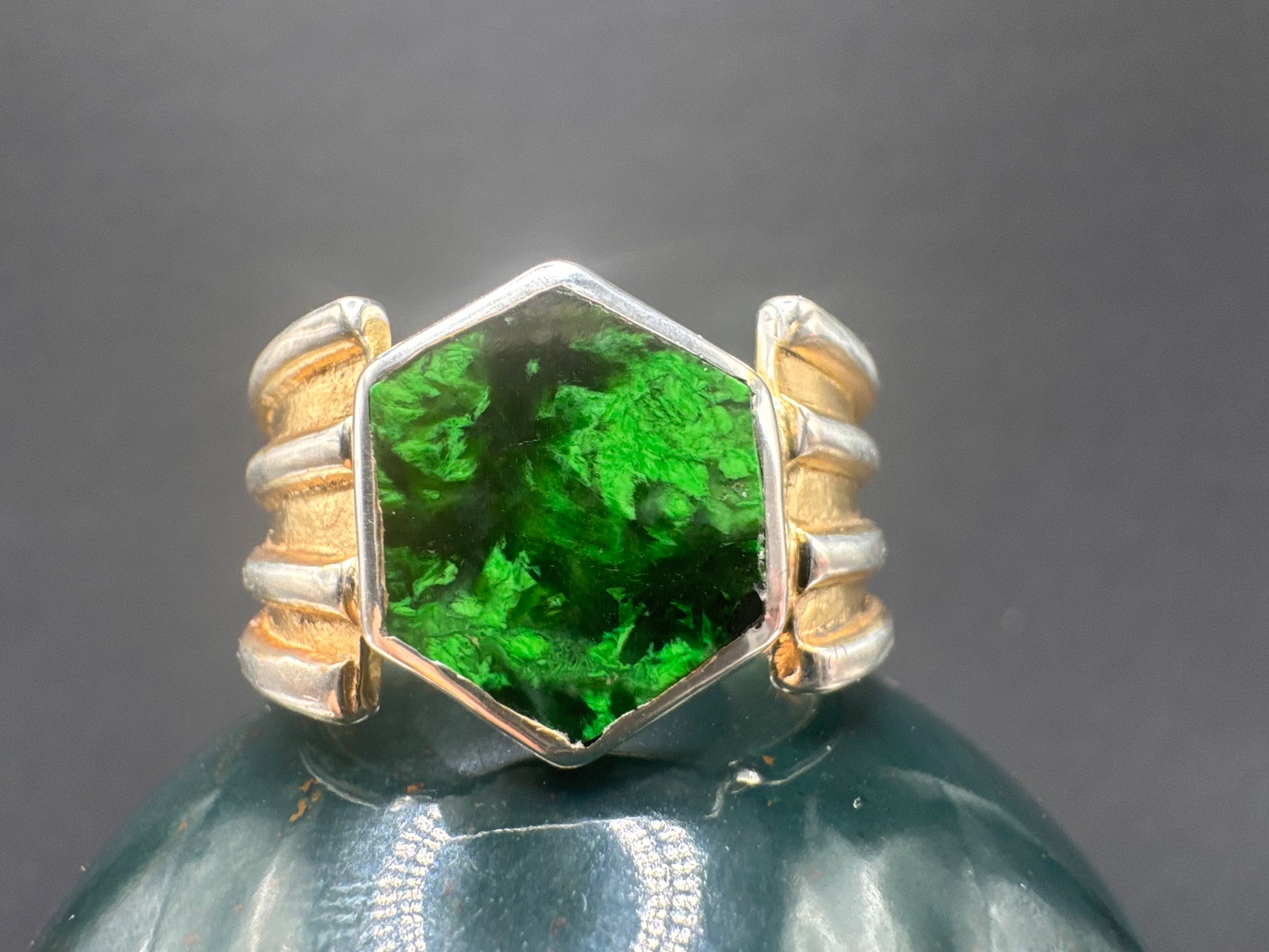 Size 12.5 . Sterling/fine silver with 24k gold plate and maw sit sit jade.